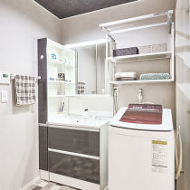お手入れ簡単浴室と保温浴槽。室調湿効果を考えた少しレトロな雰囲気を持つ洗面所[千葉県]