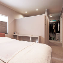 すっきりした寝室を実現する 2部屋を1部屋にした8帖寝室+ウォークインクローゼット[愛知県]